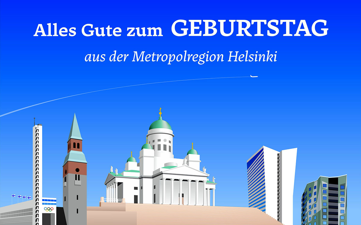 Client wished to have a greeting card for German market with a finnish flavor. Image features 3 old buildings from Helsinki and one from Espoo and one from Vantaa. I photographed 4 buildings first in order to have the same kind of angle as the building from Vantaa near the clients office. Image channels a feeling from old travel posters.