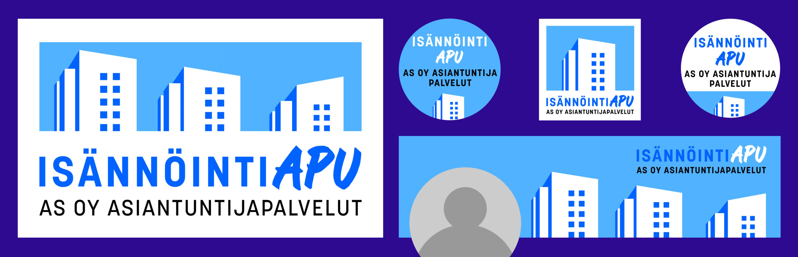 Logo for IsännöintiApu (Housing Help). The task was to create a logo that had buildings but was personal enough to be a registered trademark. The logo on the left was used in visit cards. Other variations were optimized for Instagram, Linkedin and Facebook.