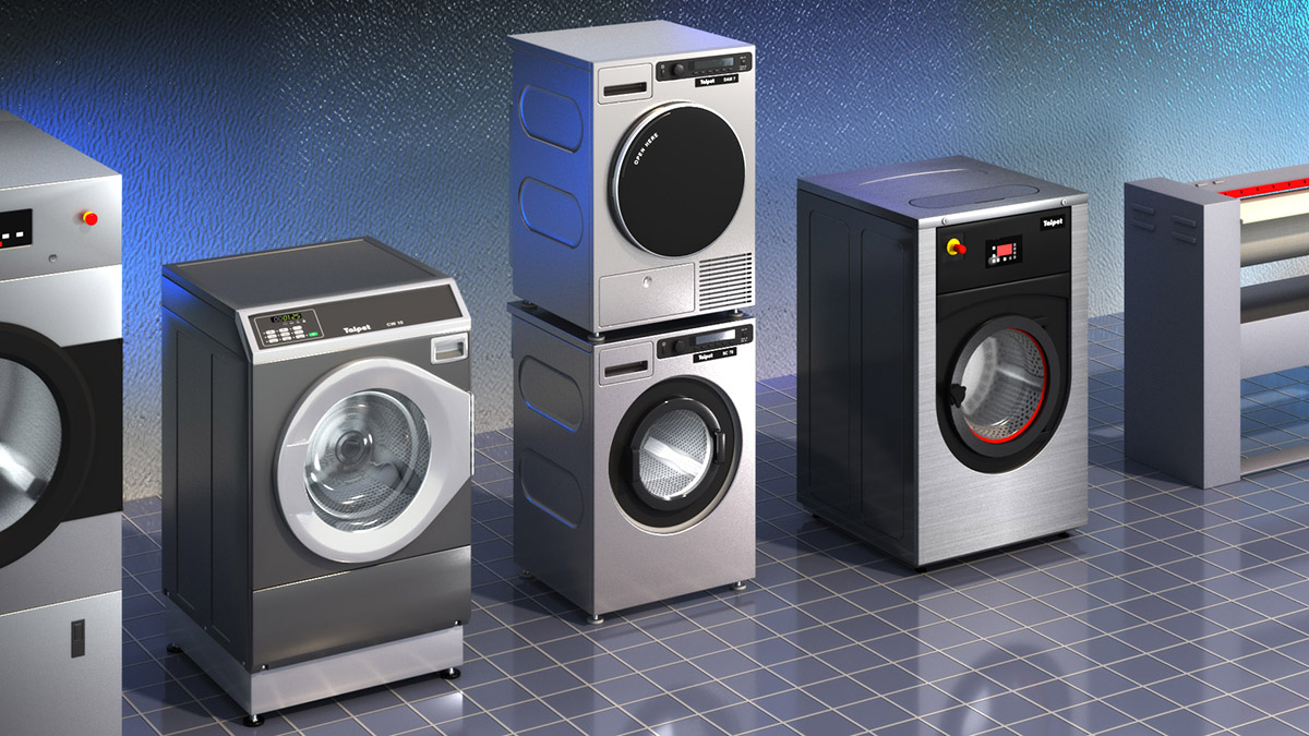 Washing machines and dryers made in 2020-2022. All machines modeled from CAD drawings. Images of the machines have been used mostly with white background in marketing material of Talpet.