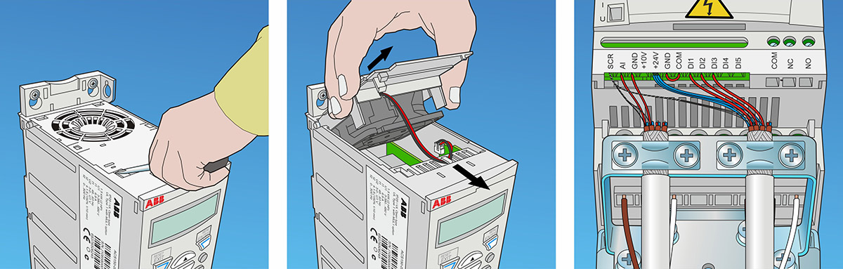 Coloured installation guide images of a technical device. Usually these are made in black and white. Images were done based on a prototype, which was photographed in different stages of installation. There was more than 20 images in the final brochure.