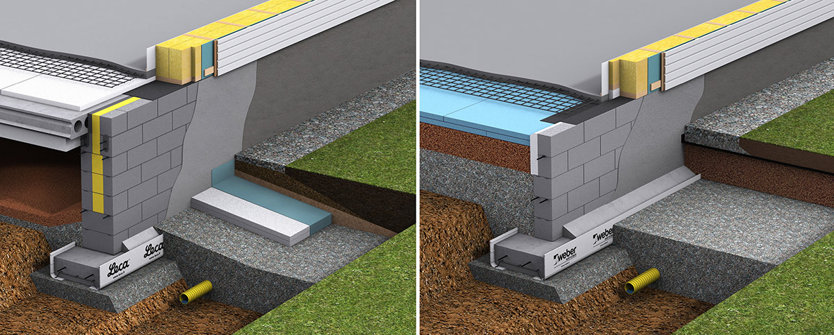 Two images from a set of over 20 images about layers of foundations of detached houses.