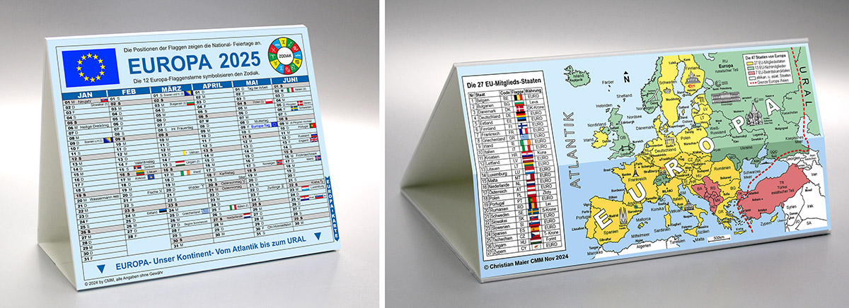 Four Figures from German Patent Application No.10 2016 001 759, drafted for the Invention of Christian Maier Munich. The Patent Application covers 33 Figures for 6 different solutions with multiple details on 12 sheets of Drawings here used by permission from CMM Patent Drawing Service Munich. Photos below show the exploitation of the patent for 2025 calendar. Calendar layout by CMM Patent Drawing Service Munich, graphics and illustrations by VIS Graphics. More about the calendars: www.cmmpatent.com.