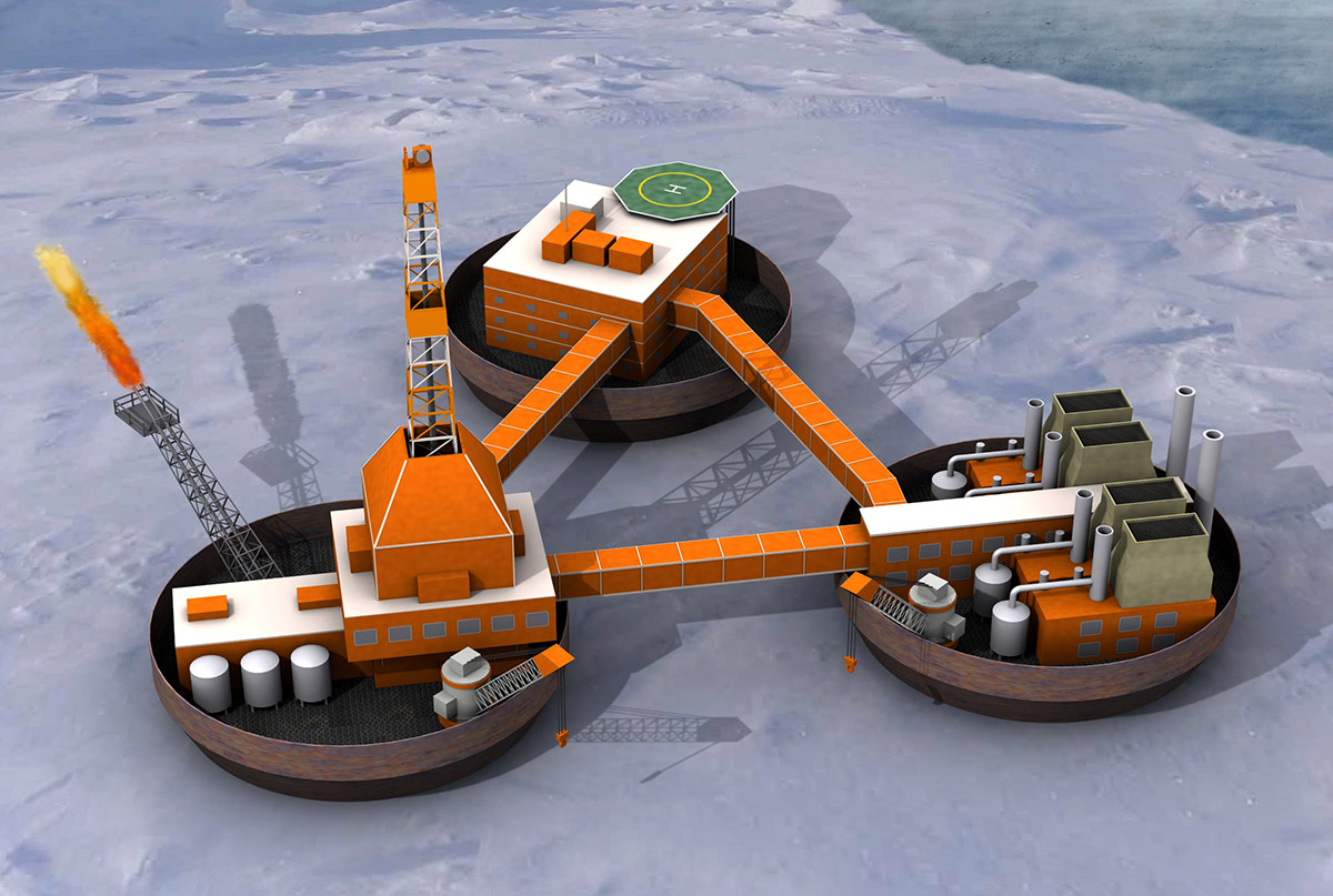 Concept sketches of oil drilling island designs for Eranti Engineering. Here the aim was to add plausible elements to arctic oil drilling island system, where due to safety issues drilling is a separate island from accommodation and maintenance islands.